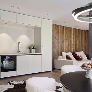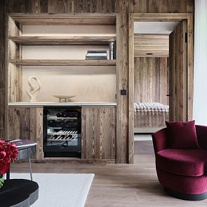 Luxuriöser, alpiner Lifestyle auf 105 m²: Edles Interieur und stilvolles Altholz verleihen der Residence ein exklusives Wohlfühl-Ambiente. Die durchdachte Gestaltung schafft einen individuellen Rückzugsort für luxuriösen Urlaub, privaten Spa-Genuss und flexible Workation.